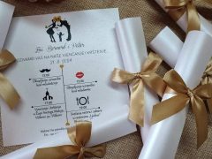 It all started with invitations and thank-you cards, and then you motivated us to do more. And so we have been with you for 12 years already. 🙂 And that means more gift boxes, bottle stickers, guest gifts in the form of magnets, chocolate treats, bottles, scented candles, lapels and seating arrangements, sparklers, etc.