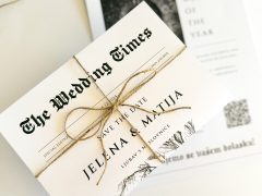 Papilon Design is a design and print studio specializing in creating personalized wedding invitations. We offer a wide range of designs that reflect the personality and style of each couple. In addition to invitations, we also provide various other printed materials such as thank you cards, table numbers, tags, labels, menus, and posters. By listening to our clients’ wishes, we have developed a diverse product base where everyone can find something that suits them best. We are fully adaptable and open to new ideas and requests.